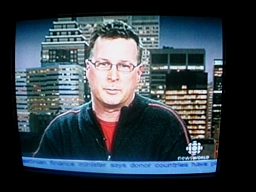 A nervous Blork called me yesterday afternoon. He had just been asked to talk about blogging on national tv and he wanted a little coaching as well as some moral support. So at 6pm I picked him up at metro Beaudry and off we went to the CBC building.